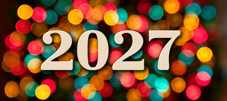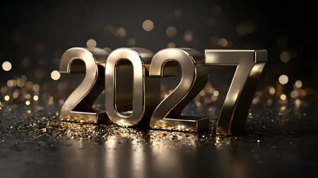 Happy New Year 2027. Golden numbers on a dark bokeh background