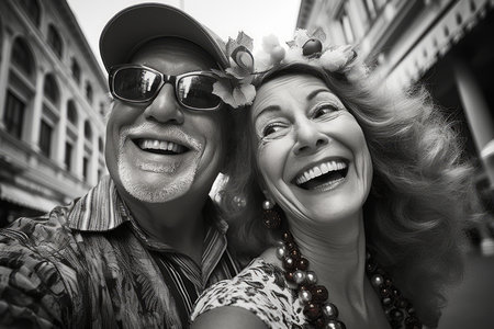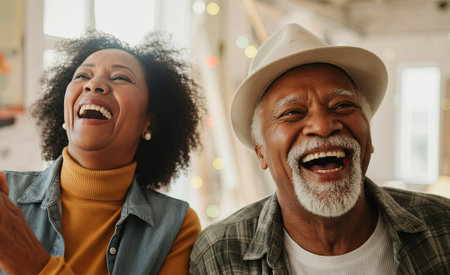 A joyful moment shared by two seniors laughing together, radiating happiness and warmth. This image captures the essence of companionship and love. Generated A.I.