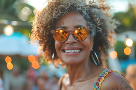 An AI generated illustration of a diverse group of people gathered at a park or on a beach, all smiling and laughing together.