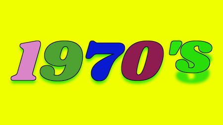 vibrant multicolored 1970s inspired text design in a bold psychedelic style against a bright yellow background