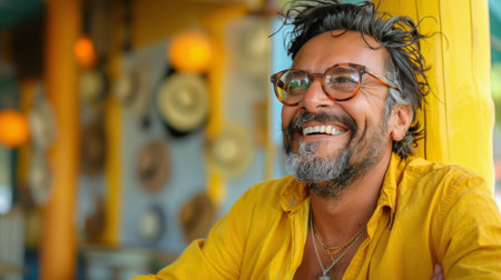 portrait of a handsome middle-aged men in casual clothes outdoors. AI generated
