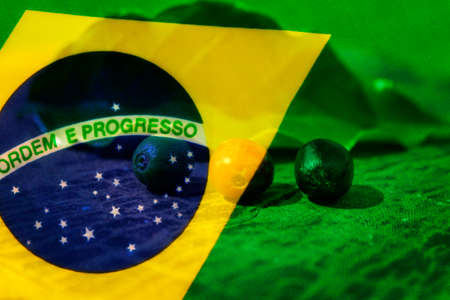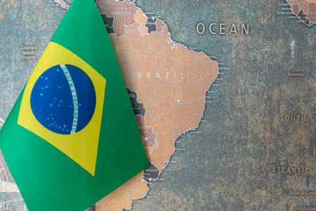 Top view of Brazilian Work Card on computer and national flag. Concept of job search in the financial crisis.