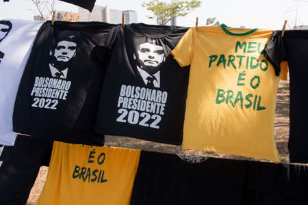Brasilia, DF, Brazil, September 7, 2021: Tee-Shirts for sale in Support of Brazilian President Bolsonaro for the upcoming 2022 Election