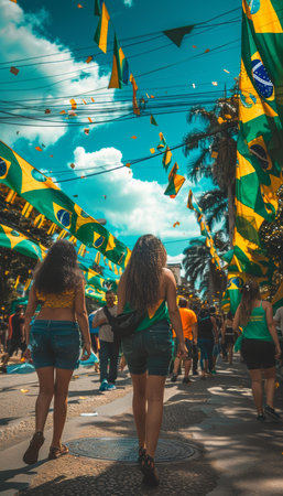 Vibrant brazilian independence day street celebration with colorful flags and decorations