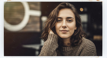 Portrait of a beautiful young woman with brown hair in a sweater.
