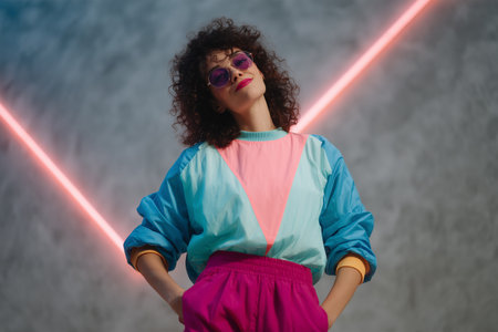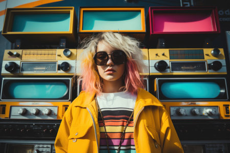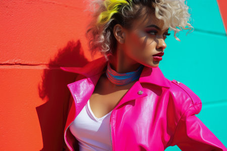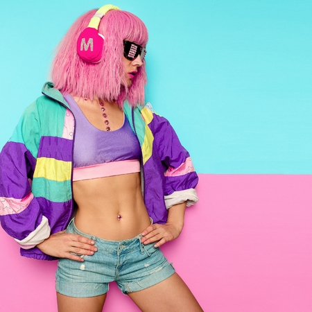 1980s 1990s style. Punk fashion as a reaction to the hippie movement of past decades and against materialistic values of the current decade. Retro, pop, hipster, neon, colorful, nineteenth