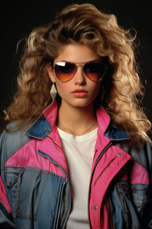 Generative AI, teen portrait in style 90s or 80s, retro fashion, vintage colors
