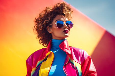 Fashionable Woman in Colorful Windbreaker and Sunglasses