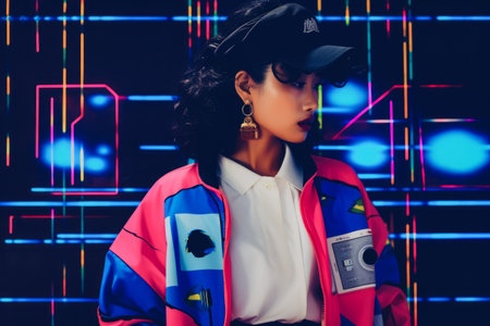 Retro-chic Retrowave fashion clothing. Style cyberpunk. Generate Ai