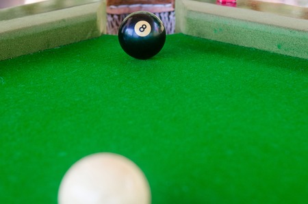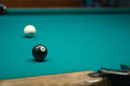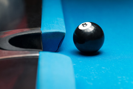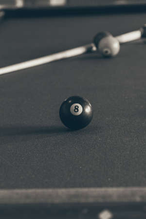Black billiard table, Billiard balls in a pool table, focused on 8 ball