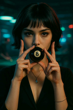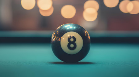 Close-up of black eight ball on billiard table, intense focus on decisive moment
