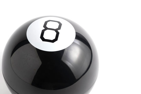 Predictions billiard ball in the hands of a man. Isolated on a white background.