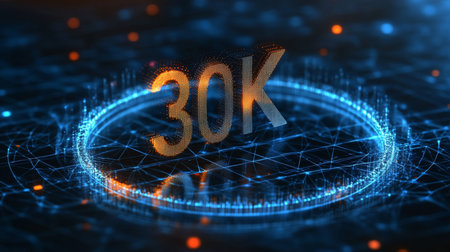Glowing 3D Number 30K on Futuristic Digital Abstract Background Technology and Achievement Concept