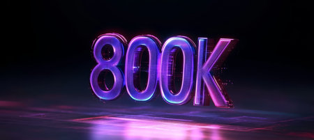 Bold Luminous Glassy Rendered Numeral 800K on a Radiant Reflective Dark Tabletop Surface Display