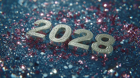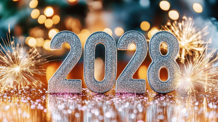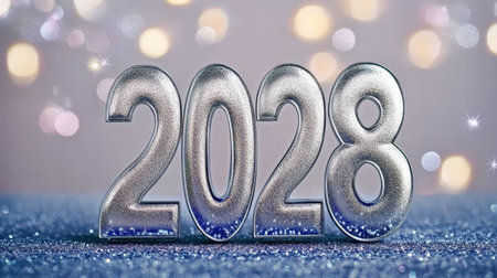 Sparkling Silver 2028 Numerals Illuminate a Celebratory Background for New Year Resolutions and Joy