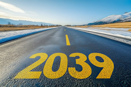 Asphalt Road Journey Marking Arrival Ahead Exploring Future Destinations in 2039 Adventure