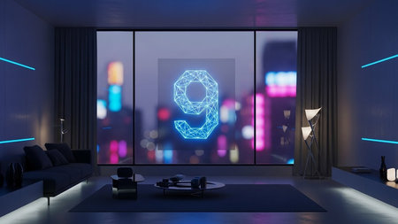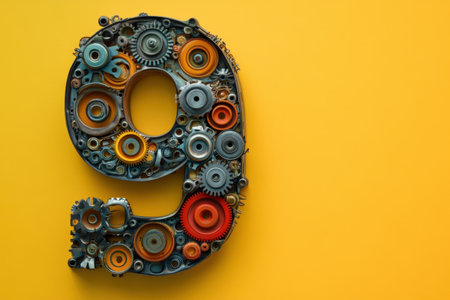 The number nine is made up of gears and other mechanical parts. The image has a mechanical and industrial feel to it