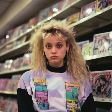 Generative AI, teen portrait in style 90s or 80s, retro fashion, vintage colors