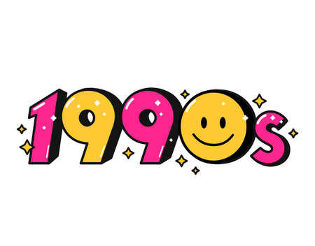1990s vintage retro style sign number. Vector doodle illustration icon. Isolated on white background. Nineties, 1990s,90s years,retro,vintage party concept.Print design for poster,flyer,t-shirt,
