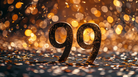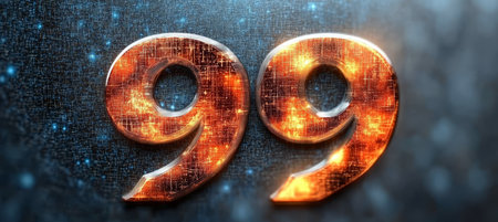 Glowing Digital 3D Number 99 in a Futuristic Style with an Abstract Background, Technology Concept