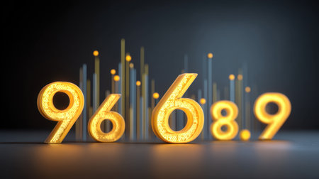 An artistic representation of bright neon numbers, specifically displaying 9668.9, set against a dark background, creating a stunning visual effect ideal for digital projects.