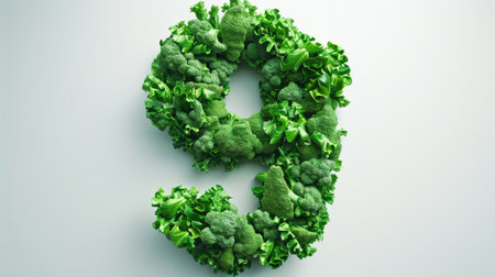 Number Nine made of green vegetables, on a white background