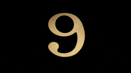 Elegant marble number nine with golden light
