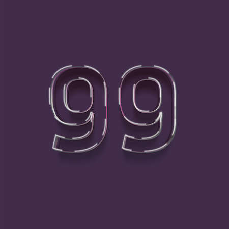 99 number with neon light effect, blue background, vector eps10