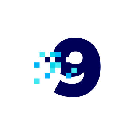 9 nine number pixel mark digital 8 bit logo vector icon illustration