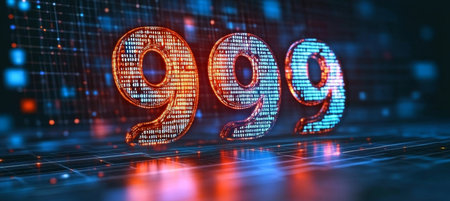 Glowing Digital Single Big 3D Number 999 in Futuristic Style on Digital Abstract Background