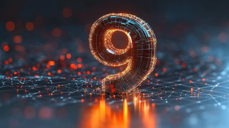 Glowing Digital 3D Number 9 on Futuristic Technology Background Innovation, Code, and Data