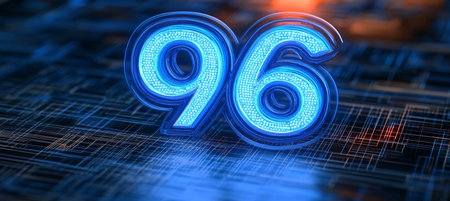 Glowing Digital Number 96 with a Futuristic Style Against an Abstract Technology Background.