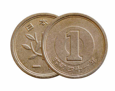 one yen japanese coin isolated on white background eagle