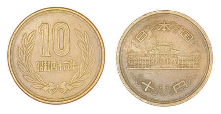 Japanese 10 Yen coin isolated on white