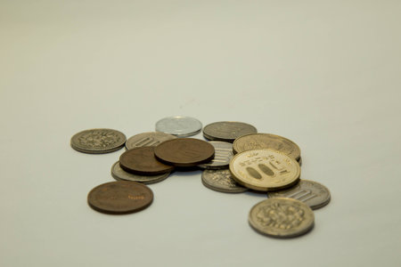 Japanese money (coins) on white background
