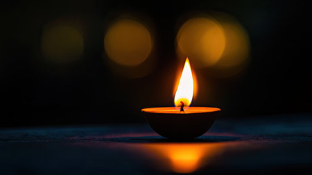 Golden diya glowing in darkness, symbolizing tradition and festive spirit in Indian culture.