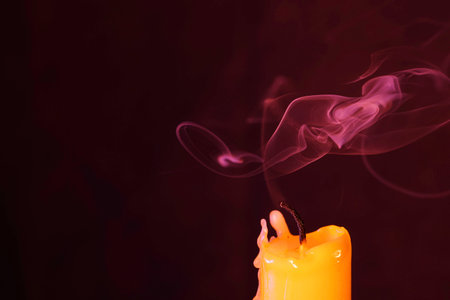 Smoke from a burning candle on a dark background with copy space