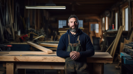 Portrait of a carpenter at work in his woodwork studio