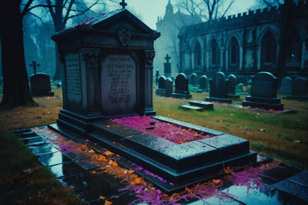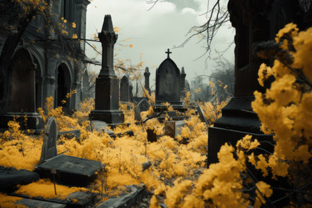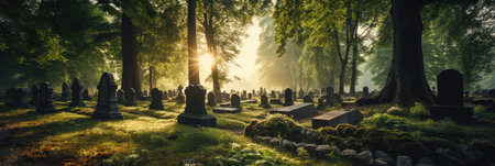 Elegant and ornate tombstones showcased in a serene cemetery setting captured in photography