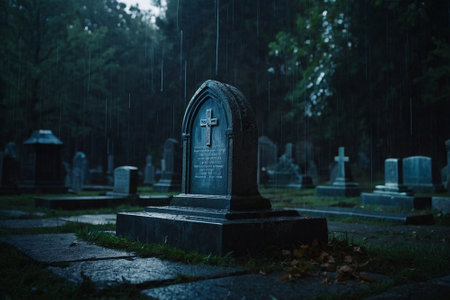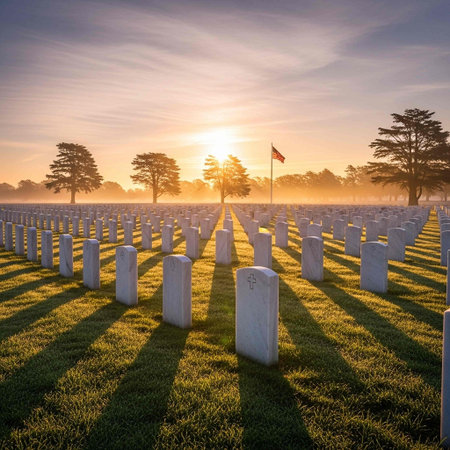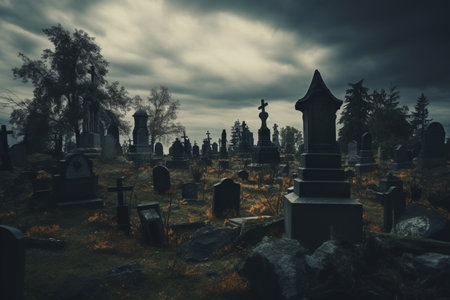A serene and somber view of rows of tombstones in a cemetery, showing the enduring presence of memory and remembrance.