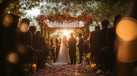Beautiful wedding ceremony in the park at sunset. Blurred background.