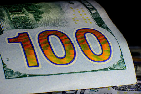 Money and Financial Concept. Closeup of 100 US Dollar banknote on black background.
