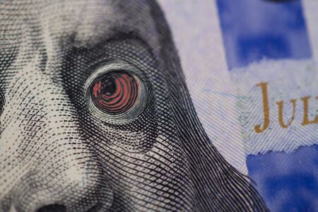 Macro face and eyes of a hundred dollar bill. money and finance concept