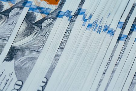 American cash dollars close-up. One Hundred Dollar Banknotes. Soft focus image.