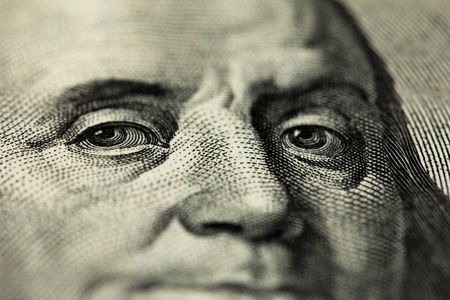Close-up of one hundred dollar bill. Shallow depth of field.