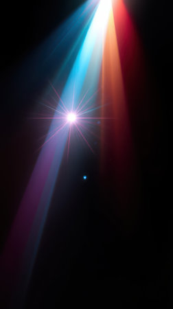 Colorful light flare on black background. Lens flare. Light beam.