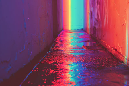 Abstract vibrant light beams in a dark room, colorful spectrum. Modern art installation concept