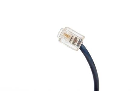 Close up shot of a telephone cable with socket, analog data transmit wire
