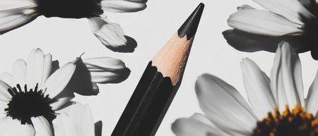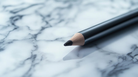 A black pencil rests on a smooth marble surface, highlighting elegance and precision. This minimalist composition inspires creativity and artistic exploration.