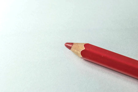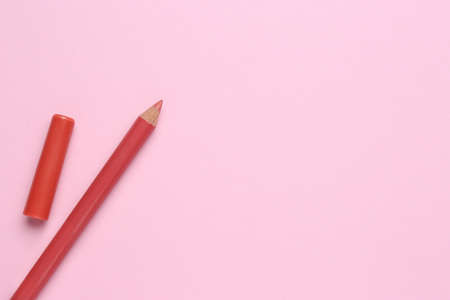 Lip pencil on pink background, flat lay with space for text. cosmetic product
